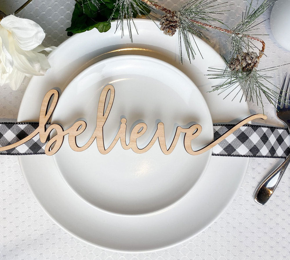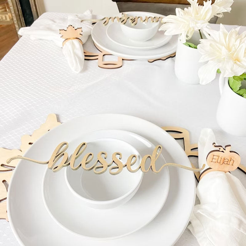 Add a touch of whimsy and elegance to your table settings with these beautiful wooden place cards. Crafted with laser precision, these timeless place cards are sure to last. These are perfect for your next dinner party, wedding, or in your next DIY or wreath project.Each place card is laser cut from sustainable sources 1/4" birch plywood in my home studio.